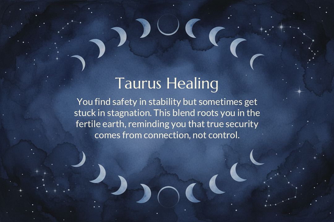 Your Inner World (Taurus Moon Alignment): Beauty and sensory pleasure are essential for you to feel truly safe. This blend settles your nervous system and helps you realize you have worked hard enough; you are safe to rest. It grounds your spirit into the knowing that abundance is not something you must chase—it is something you are already standing upon.