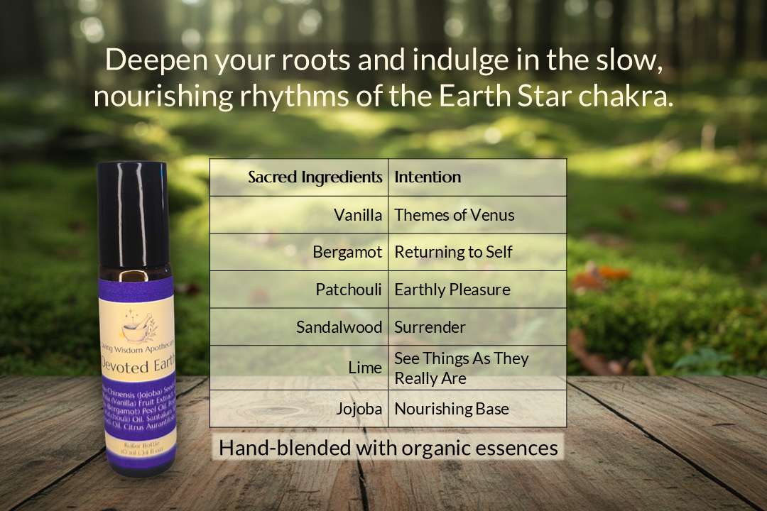 Description: Deepen your roots and indulge in the slow, nourishing rhythms of Mother Earth. This anointing oil activates the Earth Star chakra, reminding you that the earth is devoted to providing everything you need for the health of your body and the pleasure of your senses.