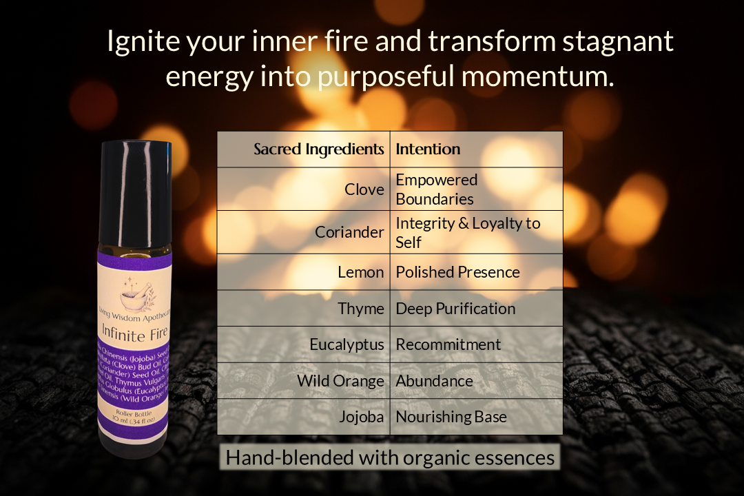 Description: Ignite your inner fire and transform stagnant energy into purposeful momentum. This blend awakens the warrior within, honoring the fierce independence and raw vitality that refuses to be dimmed.